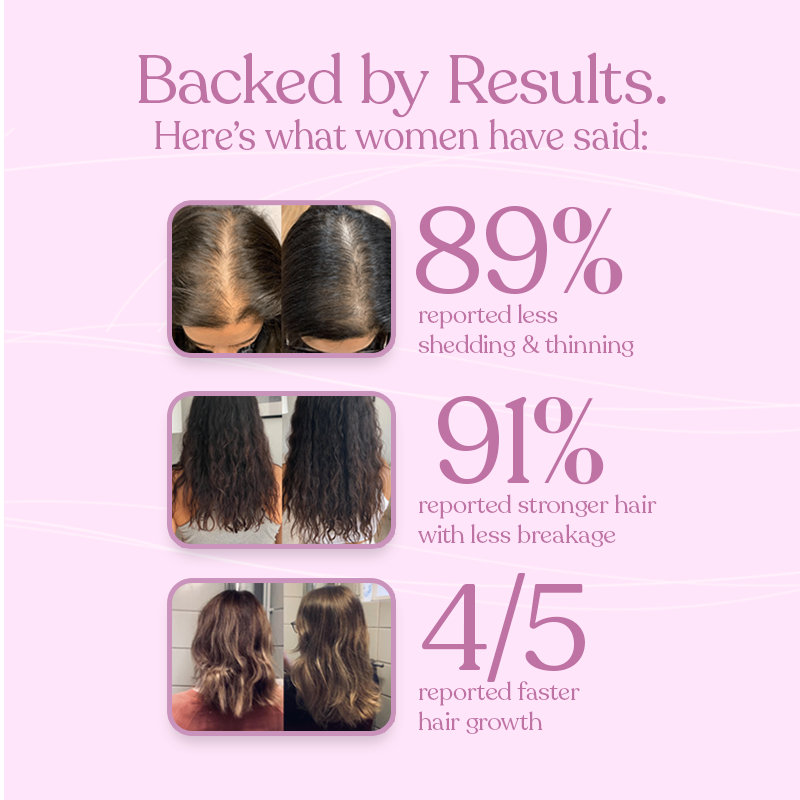 Most women start noticing less shedding and smoother, stronger hair in 4-8 weeks. For best results, stay consistent for at least 90 days.